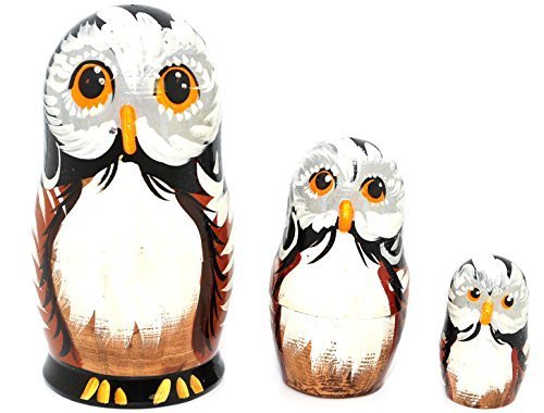 -. Title : Russian Hand Painted Owls Nesting Dolls Set of 3 Piece
