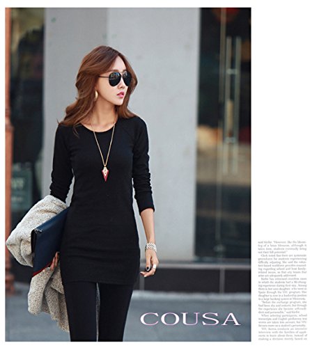 -. Title : cousa ロング Tシャツ 裏起毛 あったか 長袖 Uネック きれいめ カットソー