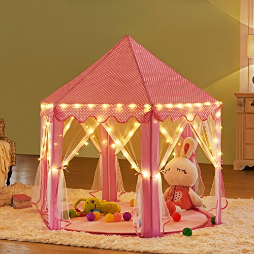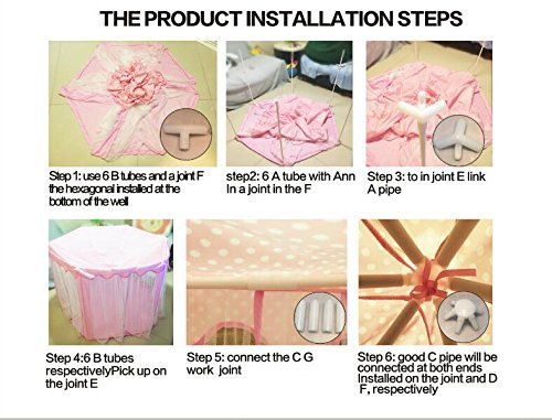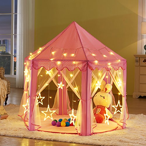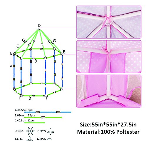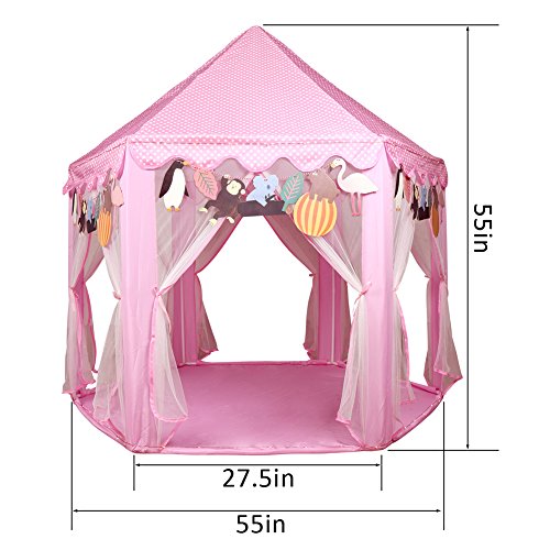 A PRIVATE SPACE FOR KIDS, This is a pretty princess tent.Dimension in inch: 55" (Diameter) x 53" (H). Specially designed hexagon, Kids can entertain,playing dress-up, read, and have a fan with friends. This little tent is just their own little world,help to widen imagination and create their own small kingdom.your kids will love this play tent definitely.