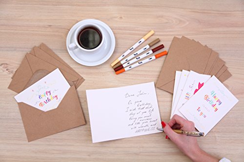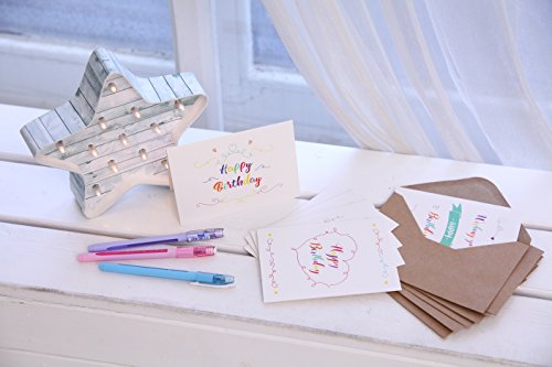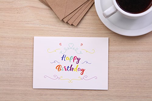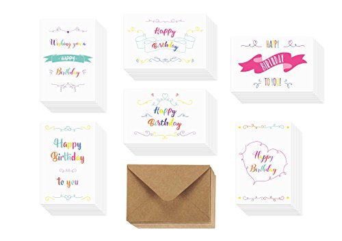-. Feature : GREAT VALUE: With six different styles, these delightfully unique happy birthday cards with colorful design are a tremendous value. In addition to coming in bulk and ensuring you always have birthday greeting cards on hand for celebrations throughout the year, they're made extremely well and the different designs allow you to personalize your card choice. If you like variety and getting a lot of bang for your hard-earned buck, these are the happy birthday greeting cards for you. / PACKAGE INCLUDES: This birthday greeting card box set features 4x6 inches 56 delightful birthday cards in six different unique colorful designs and 56 brown craft envelopes for a value that seems almost too good to be true. Plus, each card is made of premium heavy-duty 250 gsm paper card stock for a handcrafted look that says you care. With a nice matching box included as well, it's the ultimate birthday card set! / WRITE A PERSONALIZED COMPLIMENT: A personalized note is the ultimate way of expressing your wishes. Write a note, draw, or sketch with no lines, pictures, or anything else restricting your personal show of appreciation. Each of the six sketchy designs will work for girls, boys, adults, and anyone at all. With 60 blank happy birthday cards in each set, you'll have cute congratulations on hand for occasions throughout the year. / STOCK UP FOR EVERY BIRTHDAY: Whether it's your boss's birthday, a client's, your mother's, your daughter's, or your dearest friend's, this set has you covered every week of the year. Beautiful designs with elegant cursive "HAPPY BIRTHDAY" scrolling make each unique card a perfect personalized touch for kids and adults. With a timeless style and plenty to go around, you can show how much you care time and time again. / BLANK INSIDE: Each card is blank inside, giving you plenty of room to let your creativity flow. Whether it's a poem, song, drawing, or simple "Happy Birthday," our cards are your canvas. Express yourself.