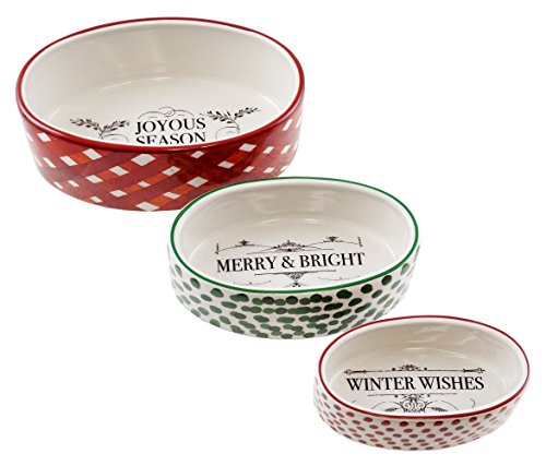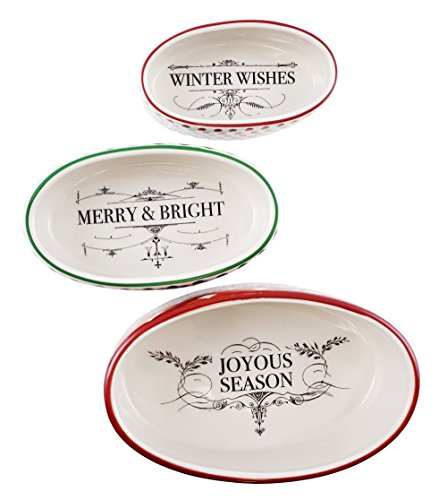 Studio : Creative Co-op Publisher : Creative Co-op Product Description This set of holiday saying ramekins are ideal for showcasing condiments baking tasty holiday treats! Features a set of decorative ramekins with botanical holiday designs each has a different Christmas saying inside; (1) says: "Winter Wishes", (1) says: "Merry Bright", (1) says: "Joyous Season" - Measurements: Small 4"L, Medium 5"L, Large 6"L. Made of stoneware (Microwave, dishwasher oven safe). Make your dishes stand out this Christmas with this holiday ramekin set! 0