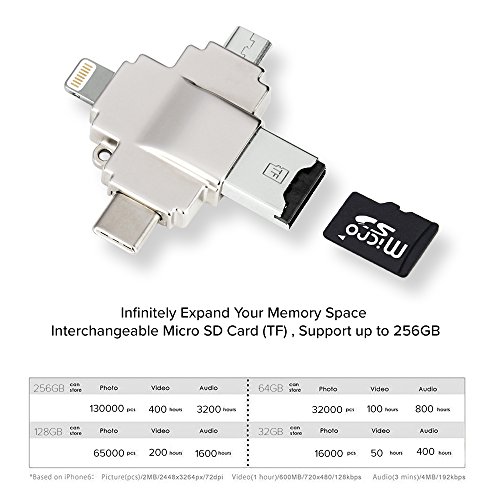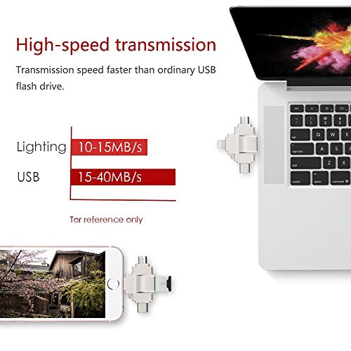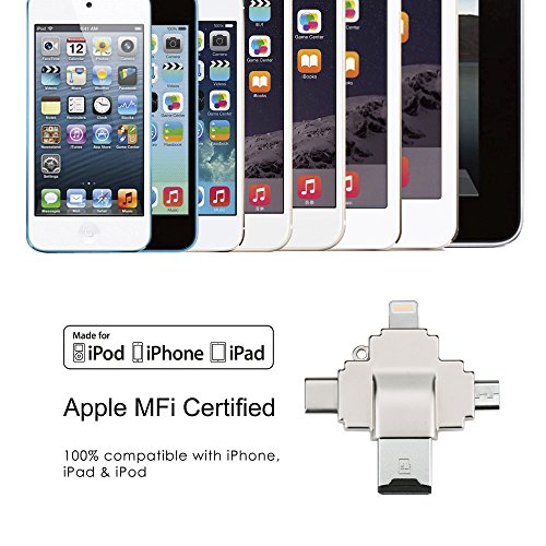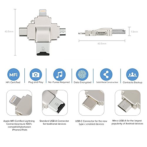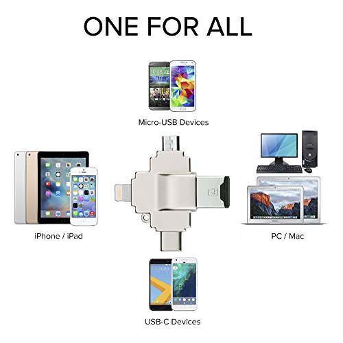 4-in-1 design allows you to access all devices: Easily transfer files, photos, and videos between iPhone, iPad, iPod, Android Phones, PCs and Mac Computers with USB-A and USB-C Connector.