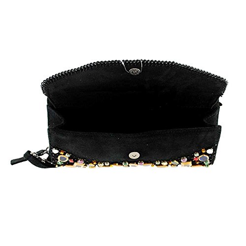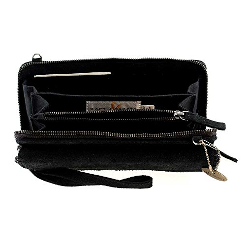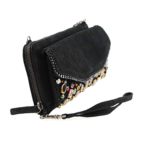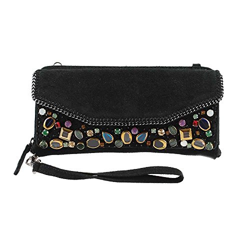 Mary Frances Fractured Embellished Suede Mini Zipper Wallet Wristlet Handbag