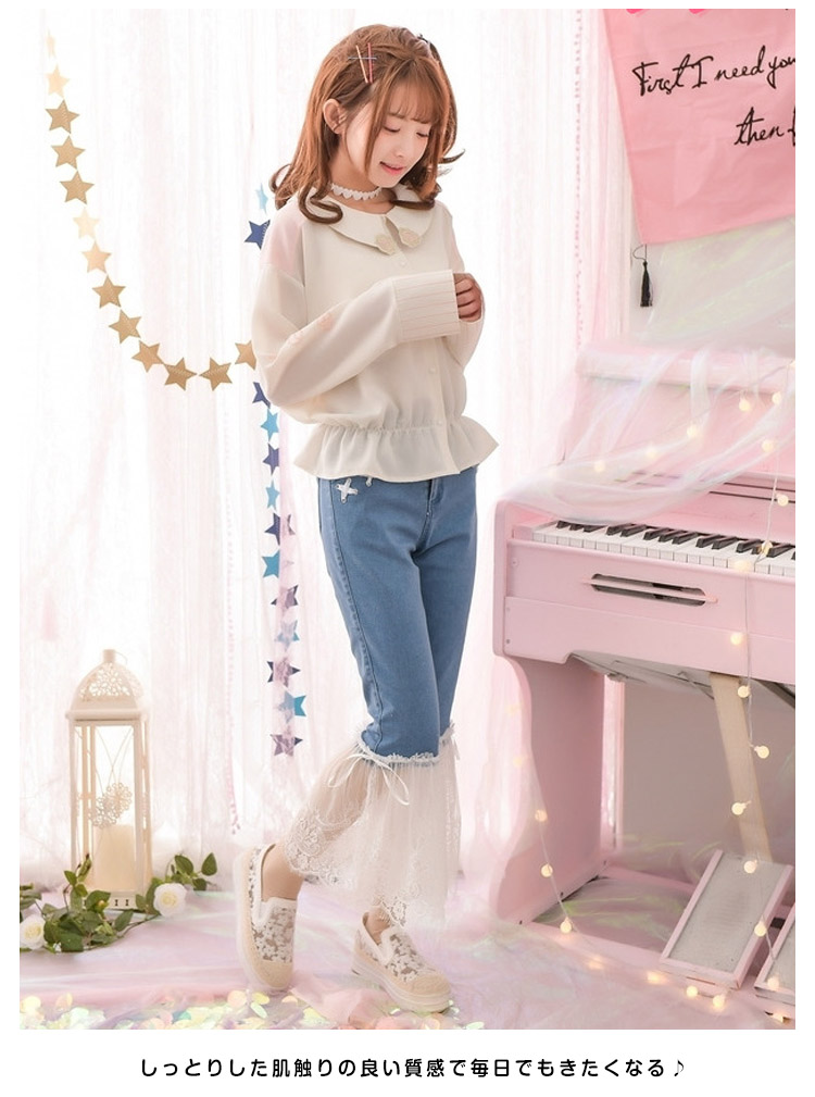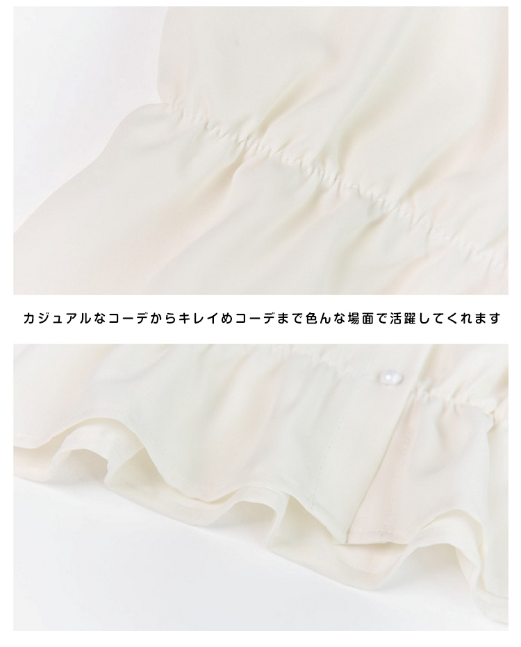 | 柔らかなシフォンでふんわりキュートな女の子を演じて☆ しっとりした肌触りの良い質感で毎日でもきたくなる♪ 清楚で上品なデザインなのでそのまま着るのはもちろん、 ジャケットやカーディガンとあわせるのも◎ | |