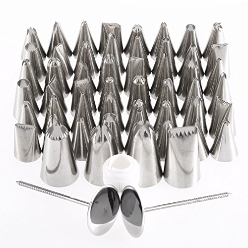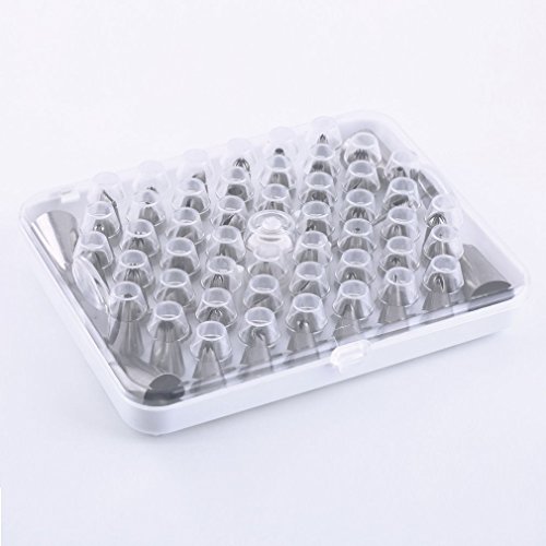E-Bro 52PCS 304 Stainless Steel Pastry Fondant Cake Decorating Sugar Craft Piping Cake Decorating Tips Set DIY Pastry Tubes Cookies Making Nozzle with Hinged Storage Box