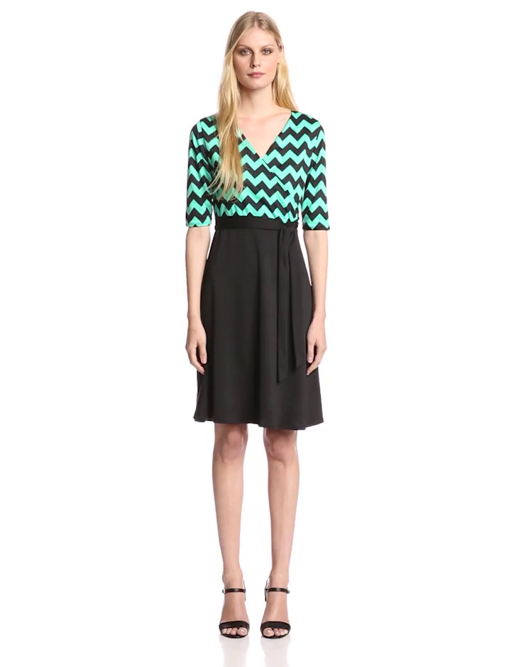 Star Vixen Women's Print Top Skirt Faux-Wrap Dress