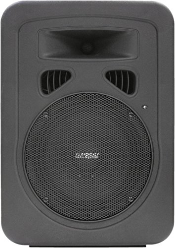 -. Feature : Built-in 480-watt amplifier / 8-inch woofer with 1.5-inch voice coil / Impact resistant, durable ABS nylon fiber cabinet / 1/4-inch microphone input with separate gain control, line RCA inputs, 1/4-inch output connector / Bass and treble tone control