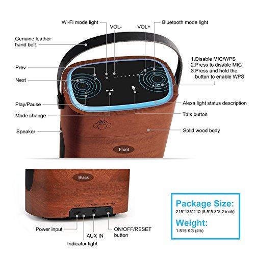 PORTABLE SMART SPEAKER WORKS WITH AMAZON ALEXA MULTI ROOM USE FARFIELD VOICE-ACTIVATED WITHOUT TAP WIFI BLUETOOTH SPEAKER WITH WOODEN ENCLOSURE