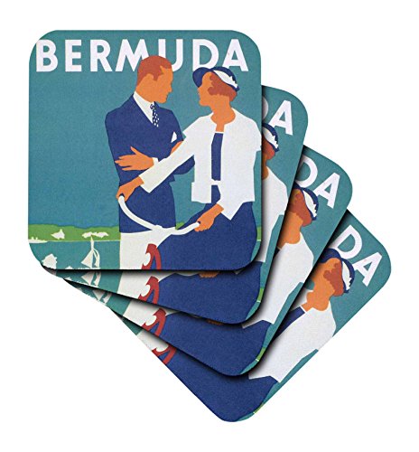 3dRose Vintage Bermuda Couple on Bicycle - Ceramic Tile Coasters, Set of 4 (cst_99198_3)