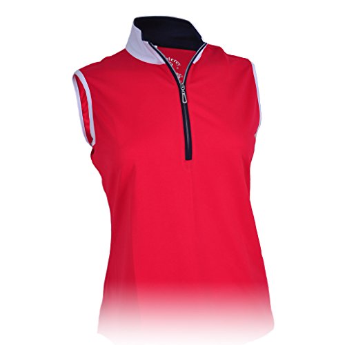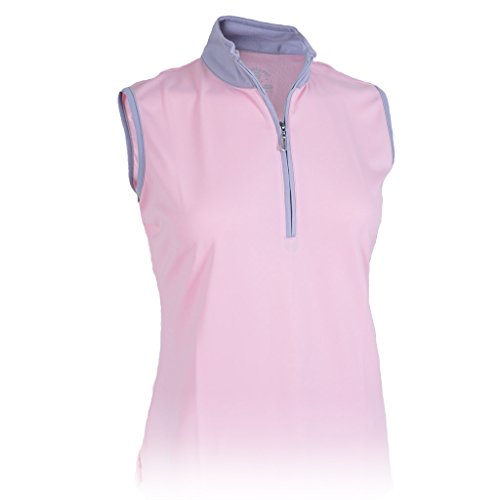 Product DescriptionMonterey Club Ladies Dry Swing Sleeveless Hi-Low Contrast Zipped up Collar #23260