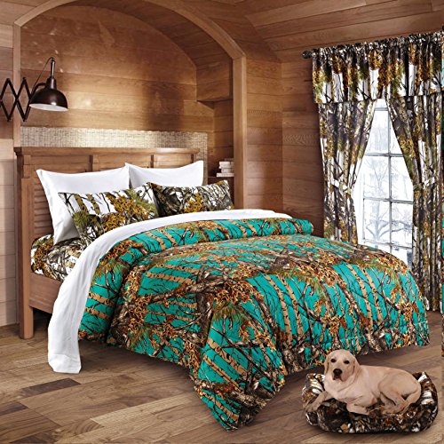 -. Feature : Super Soft Microfiber Comforter & Sheet Set / Comforter Features a 200g Polyester Fill / Unique Hunter Woodland Camo Rustic Decor Pattern / Design feature a solid color background, with trees, branches,and leaves, with a real nature feel / Comes with 1 Comforter; 1 Flat Sheet; 1 Fitted Sheet; 4 Pillowcases