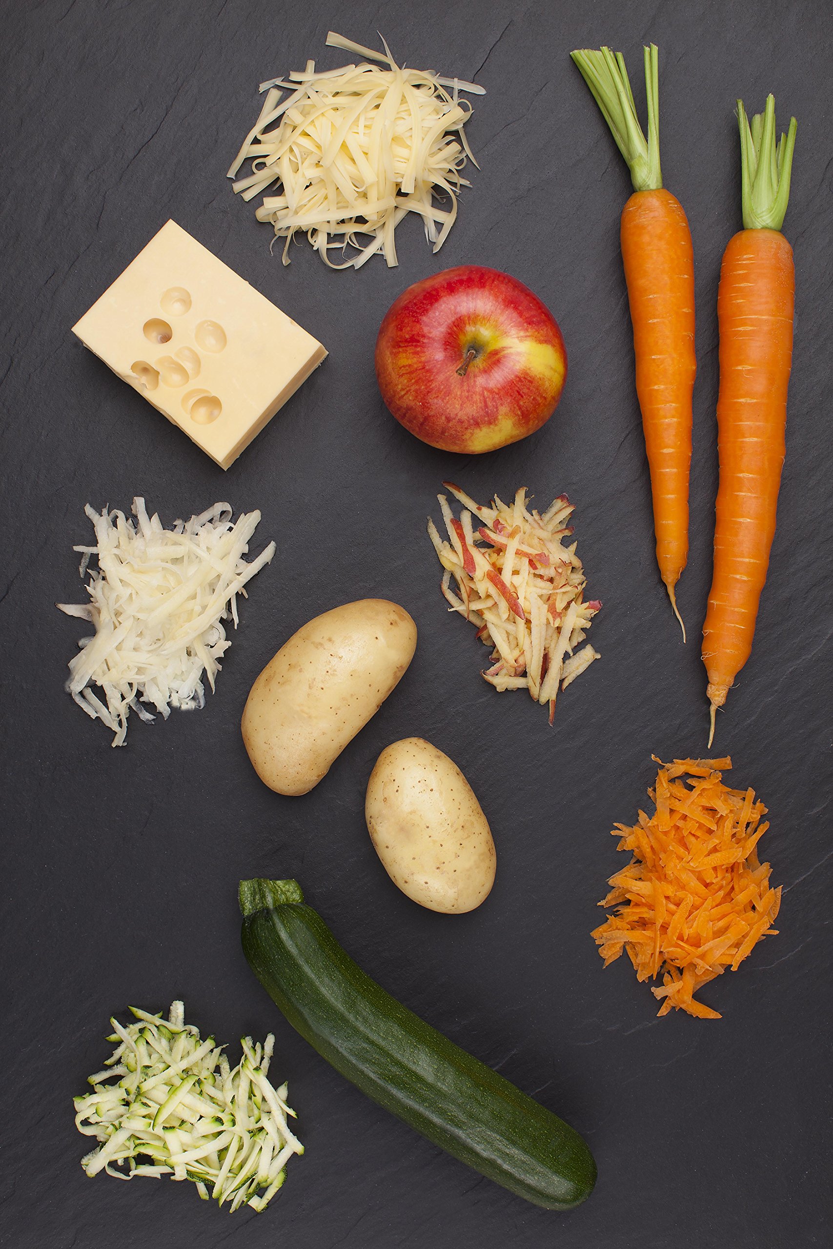 The razor-sharp stainless steel blade grates without clogging due to its unique blade profile, therefore no waste is created. Made from