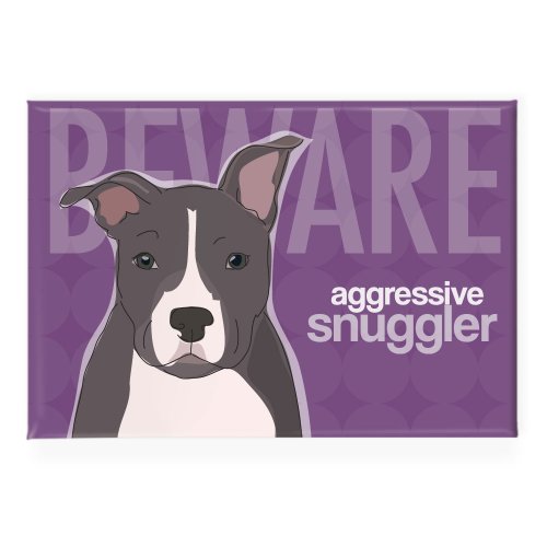 Pop Doggie Beware Aggressive Snuggler Gray and White Pit Bull Fridge Magnet