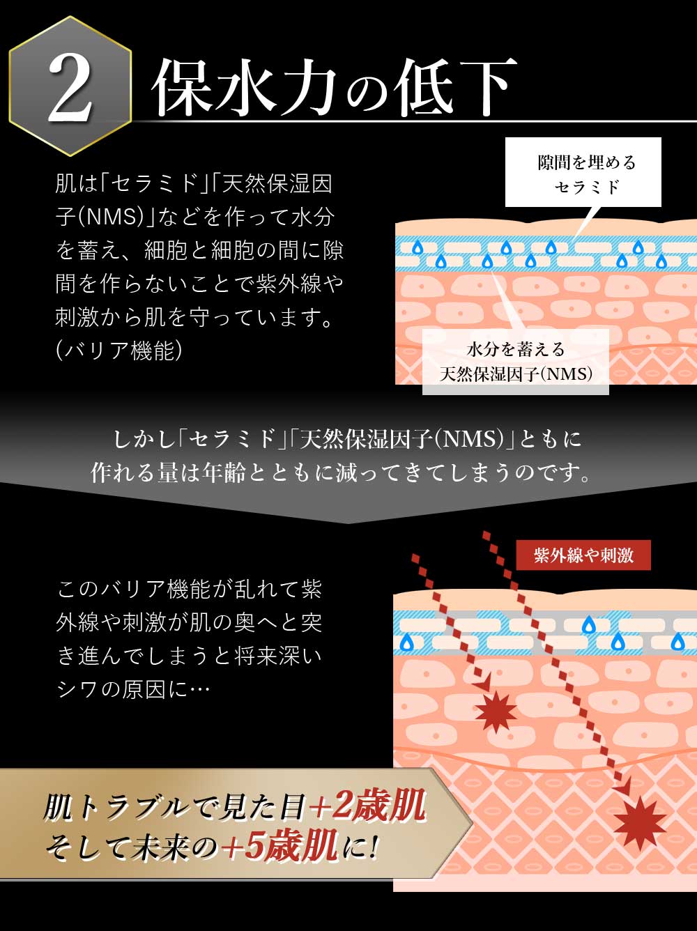| 【その他の成分】 | ジプロピレングリコール、ヒアルロン酸ナトリウム(2)、シロキクラゲ多糖体、スクワラン、マカデミアナッツ油脂肪酸フィトステリル、シクロヘキサンジカルボン酸ビスエトキシジグリコール、1,2-ペンタンジオール、パルミチン酸イソプロピル、グリセリンモノ2-エチルヘキシルエーテル、グリセリン脂肪酸エステル、サクラ葉抽出液、オウゴンエキス、エイジツエキス、クワエキス、シャクヤクエキス、トウキエキス(1)、クララエキス(1)、1,3-ブチレングリコール、カルボキシビニルポリマー、水酸化カリウム、キサンタンガム、dl-α-トコフェロール、1,2-ヘキサンジオール、フェノキシエタノール、精製水 |