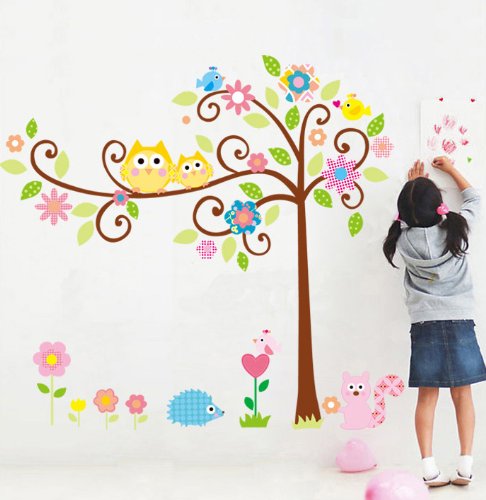 -. Title : HQdeal Removable Wall Decal Cartoon Wall Decor Stickers Wallpaper Owl Tree Squirrel