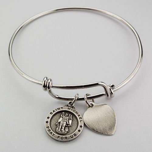 St Michael Medal Pewter Faith Bangle Bracelet Adult 2 1/2" Diameter