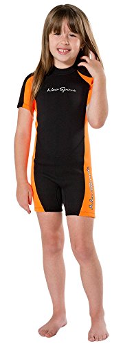 NeoSport Wetsuits Children's Premium Neoprene 2mm Shorty Wetsuit, Black/Orange, Size Four
