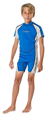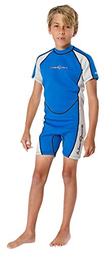 NeoSport Wetsuits Children's Premium Neoprene 2mm Shorty Wetsuit, Blue/Platinum, Size Eight