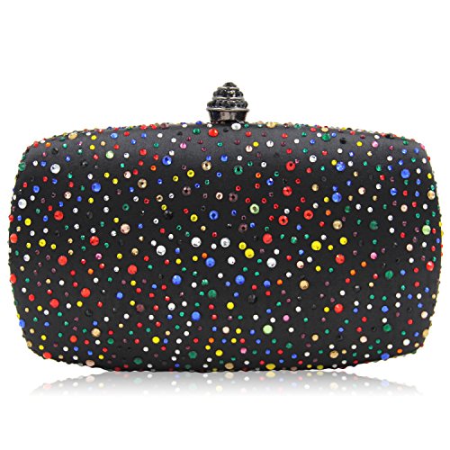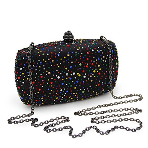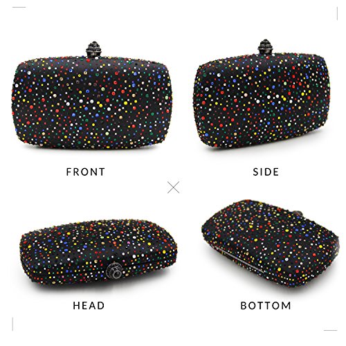 (Mystic River)/Accessories/Handbags/DIRECT FROM USA/Black Satin Party Clutch Purses Vintage Muliticoloured Crystal Evening Bag Shoulder Handbags Fo...