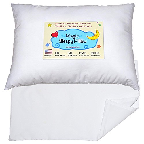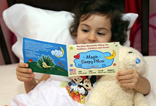 Toddler Travel Pillow 13x18 - Delicate Soft & Hypoallergenic White Cotton Shell with Pillowcase & Bedtime Story - Made in USA