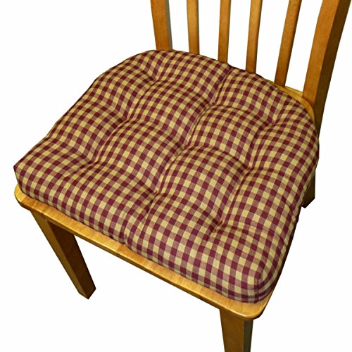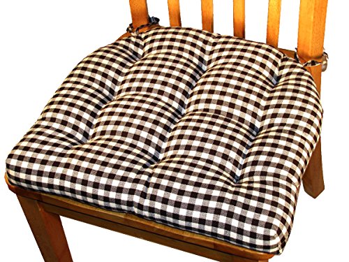 -. Binding : Kitchen -. Brand : Barnett -. Color : Multi -. Feature : Premium latex rubber fill for ultimate comfort and durability -- more comfortable than polyester and won't flatten / Triple-stitched back-ties and lock-stitched seams won't pop / Nine tacking-stitches, instead of four, keeps fill in place / Machine washable, air dry. Made in the USA with imported fabric / Available in two sizes and several color combinations -. Label : Barnett Products -. Manufacturer : Barnett Products -. PackageQuantity : 1 -. ProductGroup : Furniture -. ProductTypeName : HOME -. Publisher : Barnett Products -. Studio : Barnett Products -. Title : Dining Chair Pad with Ties - Checkers 1/4" Check - Reversible, Latex Foam Fill - Tufted Rocking Chair Seat Cushion