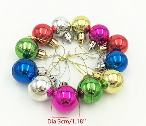 YYaaloa Exquisite 24pcs 3mm MINI Balls Ornaments for Christmas Tree Decor Decoration Ball Decorative Pendants Hanging Christmas Baubles Balls Ornaments Set with String (3cm/1.18inch 24pcs)