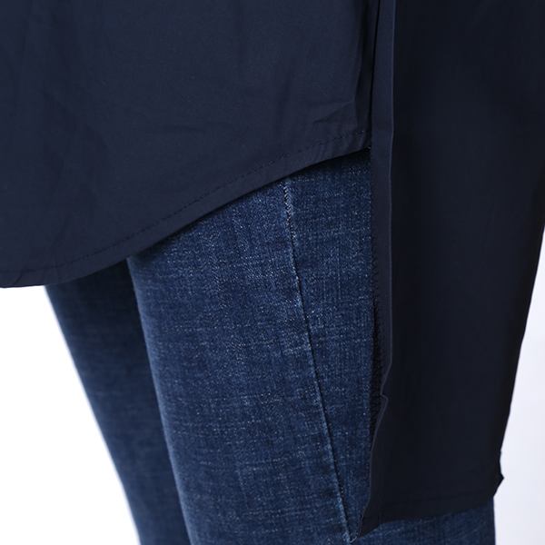 밑단이 언밸런스한 기장으로 뒷기장이 힙라인을 가려주고