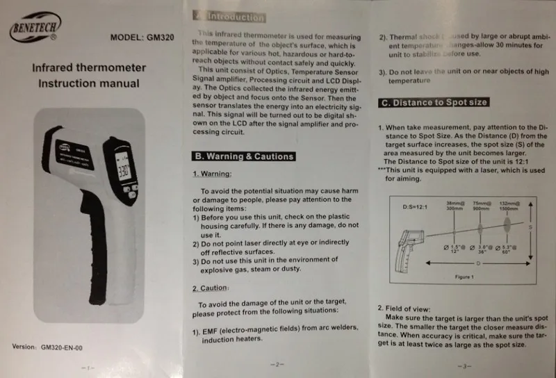 Measurement Temperature range: -50C ~ 380C ( -58°F ~ 716°F ).