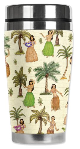 Mugzie Hula Girls Travel Mug with Insulated Wetsuit Cover, 16 oz, Black