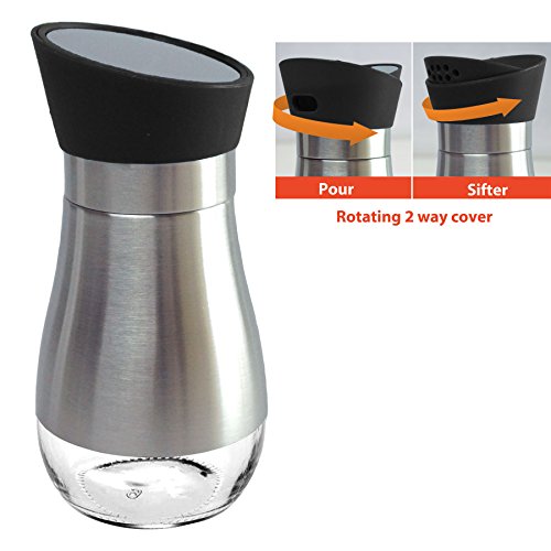 (Kuda Moda)/Kitchen Dining/Cook's Tools Gadgets/DIRECT FROM USA/Spice / Sugar / Salt / Pepper Shakers Stainless Steel Cover Glass Bottom With Rotating Cover (Black)