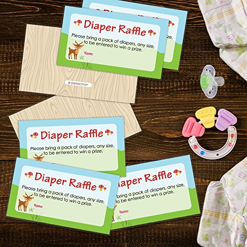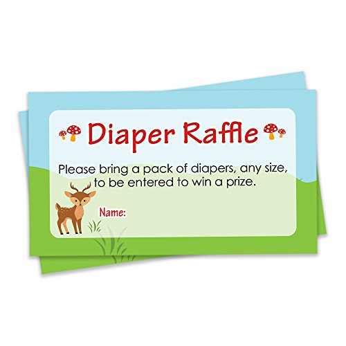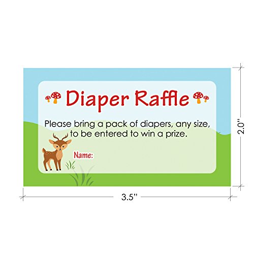 Diaper Raffle Tickets - Woodland Baby Shower Invitation Insert Cards (25 Count)