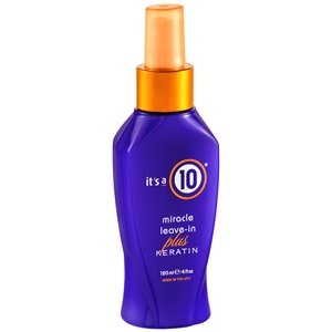 Smooth, sleek, soft, strong... It’s all simpler than ever thanks to the essential conditioners and effortless spritz-on application of It’s a 10 Miracle Leave-In Conditioner Plus Keratin. Excellent just out of the shower as a detangler, and even better as a barrier of protection against heat styling, this lightweight, fragrant conditioner penetrates deep into the hair shaft, rebuilding dry and damaged hair from the inside out with hair’s most vital nutrient – Keratin. Used daily, the product makes straight styles mirror-smooth and glossy, gives curls soft, frizz-free definition, and makes all types of hair more touchable and resilient with every applicationFeature