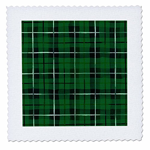 3dRose Green, Black, and White Plaid Pattern Quilt Square, 25 x 25"