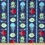 Pre-cut 2 Yards - "Ahoy Matey" Fish Stripe on Blue Cotton Fabric (Great for Quilting, Sewing, Craft Projects, Quilt, Throw Pillows & More) Pre-cut 2 Yards X 44"