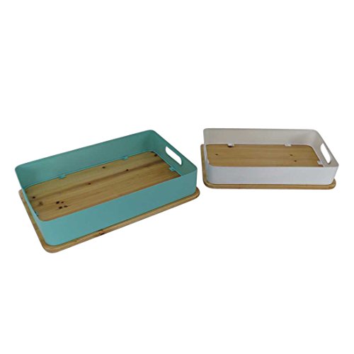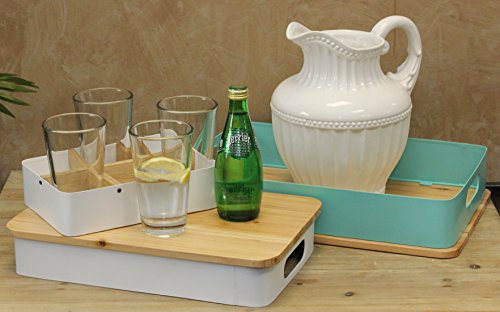 Sagebrook Home 12238-04 S/2 Wood Trays, 17.75" x 11.75" x 3.5", Green/White