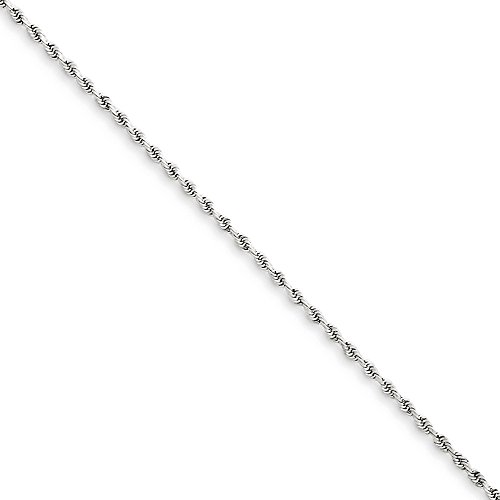14k White Gold 1.5mm Diamond Cut Rope Anklet. Material: Primary - Purity:14K|Plating:Rhodium|Chain Length:10 in|Chain Type:Rope|Chain Width:1.5 mm|Clasp /Connector:Lobster|Feature:Solid|Material: Primary:Gold|Product Type:Jewelry|Jewelry Type:Anklets|Sold By Unit:Each|Anklet Type:Chain Styles|Texture:Diamond-cut|Material: Primary - Color:WhiteFeature