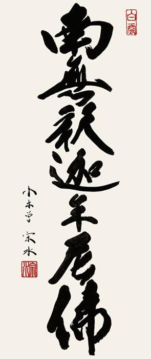 鮮やかな墨痕でしたためられた南無釈迦牟尼仏には、深い意味がこめられています。日々唱えることで平安浄福に包まれることでしょう。 |