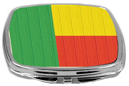 Rikki Knight Compact Mirror on Distressed Wood Design, Benin Flag, 3 Ounce