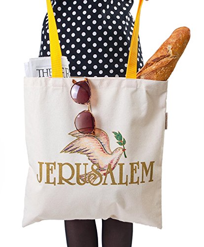 Cotton-Canvas Hand Shoulder Tote Bag, Jewish, Holy Land (Jerusalem Dove) Made in Jerusalem