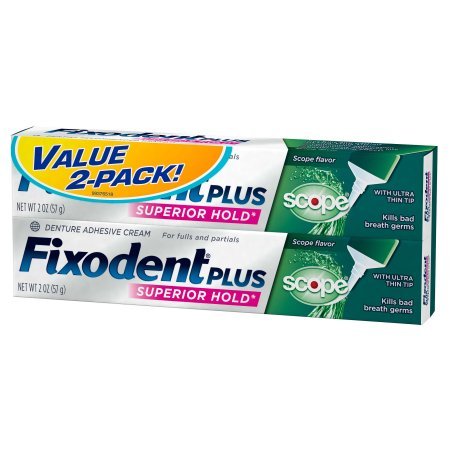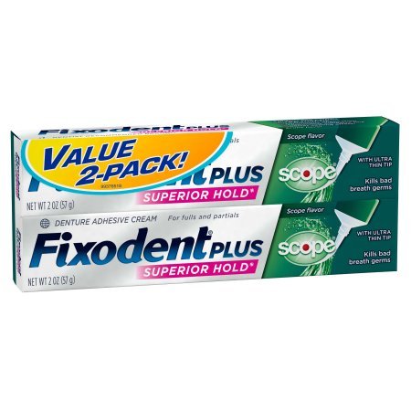 Studio : Fixodent Publisher : Fixodent Binding : Misc. Product Description Make life a little easier with Fixodent Denture Adhesive Cream. Fixodent is the most trusted name in denture care, keeping dentures and partials firmly in place with a strong hold that lasts all day. Fixodent adhesive cream, 2 oz, seals out food particles, for added comfort and convenience. Each tube is outfitted with a precision tip nozzle that lets you apply just the amount you want where you want it, ensuring a comfortable and secure fit and less ooze. The cream is infused with powerful Scope mouthwash that kills odor-causing germs and freshens breath with a bold mint flavor. Each multiunit pack includes two tubes of Food Seal plus Scope flavor denture cream. With proper use, each tube can last for up to seven weeks, for added convenience. 0
