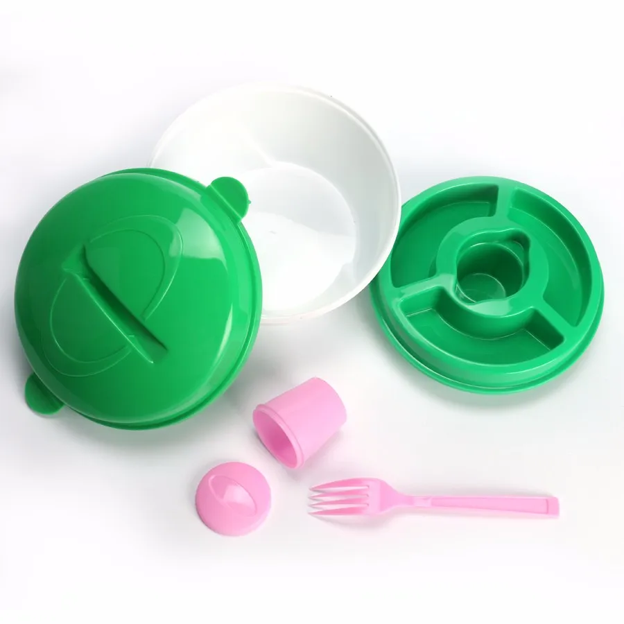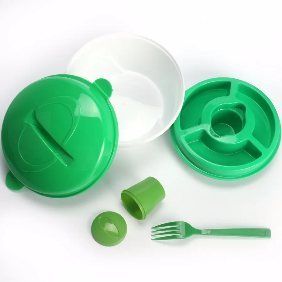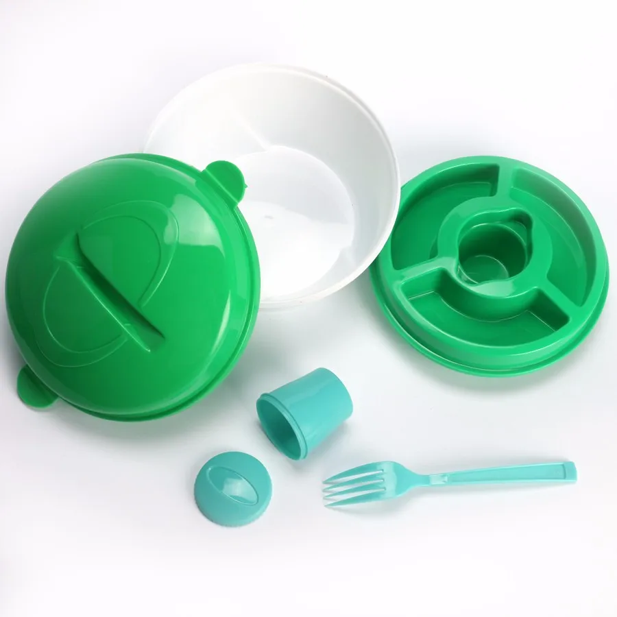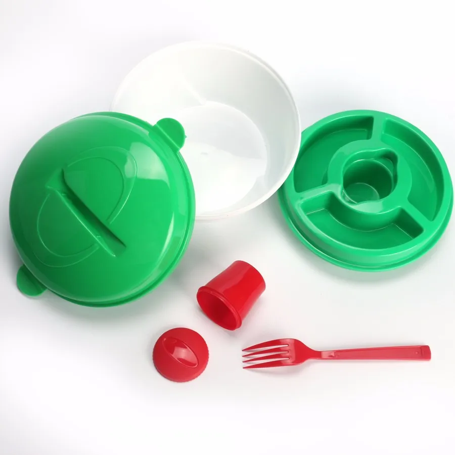 Portable Double Layer Bowl w/Dressing Sauce Salad Kit Lunch Box Easy Storage Plastic Food Container