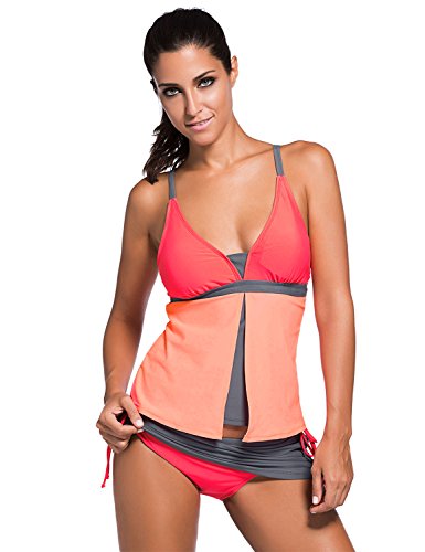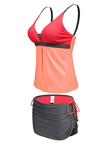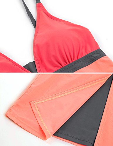 Title : LookbookStore Womens Orange Pink Colorblock Two-Piece Tankini Skirtini Swimsuit Set Swimwear US 18-20