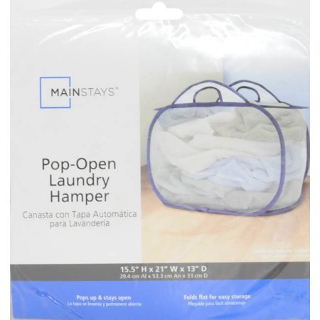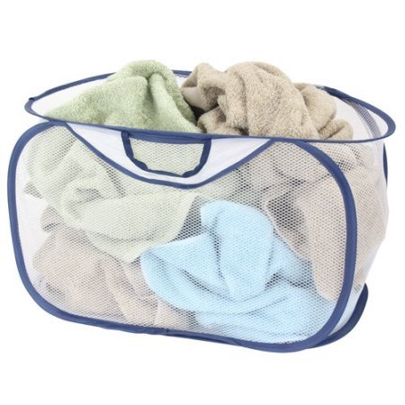 Mainstays Pop-Up Laundry Basket Hold 15.5"Hx21"Wx13"D (White/Blue)