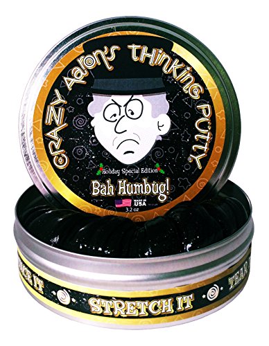 -. Binding : Toy -. Brand : Crazy Aaron's -. EAN : 0884540627466 -. Feature : The story of Ebenezer Scrooge is one for the ages. Miserly and miserable, he lives a life of solitude and sadness. He is rich in wealth, but not in spirit. / It's only after his ghostly visits that he begins to understand that compassion, love and generosity are what matter most. / And that money is best when you give it away. / Crazy Aaron thinks so, too. That's why he's included a golden coin in each tin of this sparkly black Thinking Putty. / Not for children under 3 yrs. Fun for the whole family! - Makes a great gift! -. IsAdultProduct : 0 -. ItemPartNumber : BH020 -. Label : Crazy Aaron's -. Manufacturer : Crazy Aaron's -. ProductGroup : Toy -. ProductTypeName : TOYS_AND_GAMES -. Publisher : Crazy Aaron's -. Studio : Crazy Aaron's -. Title : Bah Humbug Holiday Christmas Crazy Aaron's Thinking Putty 4 inch Tin For Ages 8+ Includes Golden Coin -. UPC : 884540627466