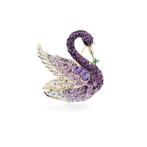 Amelery Women's Brooches Pins Austrian Crystal Swan Bling Brooches Jewelery (Amethyst)