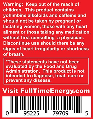 -. Feature : Finally... An Energy Supplement that works as hard as you do... / Quickly and Easily Increase Your Energy Levels... / Discover Full-Time Energy's Synergenic Energy Blend and Experience a Long Lasting, Smooth Natural Feeling Energy... / Powerful Fat Burner... Helps to Melt That Unwanted Body Fat FAST... Hard Working Formula XtenrG Blend includes Green Tea Leaf Extract, Caffeine, Yohimbe Bark Extract (yohimbine), Cinnamon Twig Extract, Galangal Rhizome, Glucuronolactone, Naringin, Hoodia Gordonii 20:1 Extract (aerial parts), Gulsterones E & Z (95%) / Order with Confidence... Every Bottle of Full-Time Energy is Backed By Our Iron-Clad 100% Money Back Guarantee!