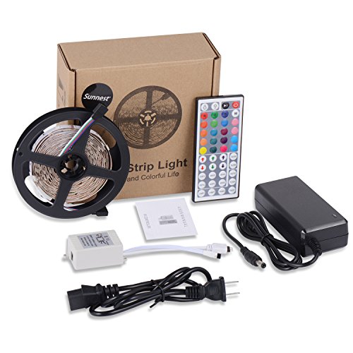 Sunnest 16.4ft LED Flexible Strip Lights, 150 Units SMD 5050 LEDs, Non-Waterproof 12V DC Light Strips, RGB LED Light Strip Kit with 44Key Remote Controller and Power Supply for Kitchen Bedroom Car Bar
