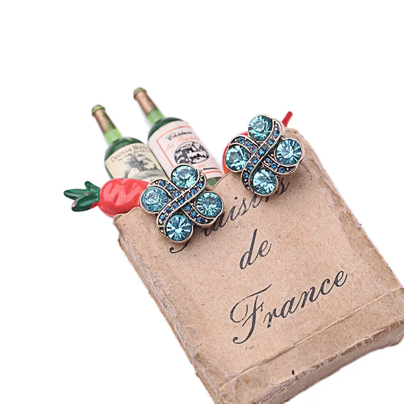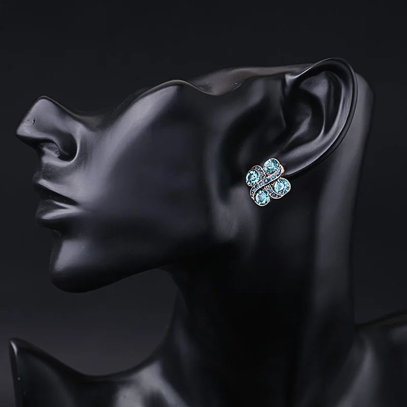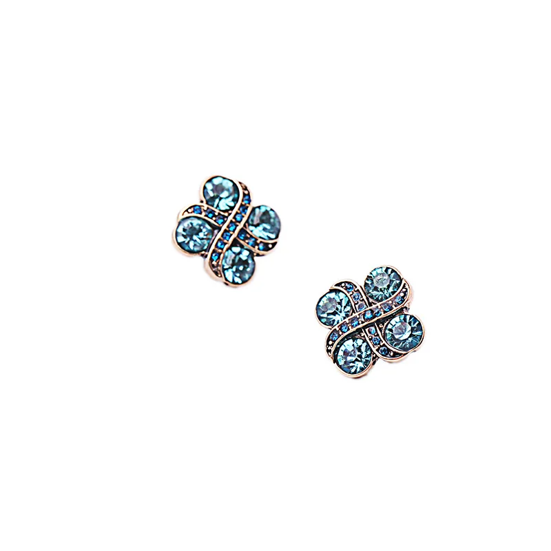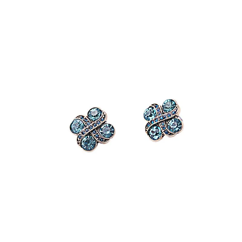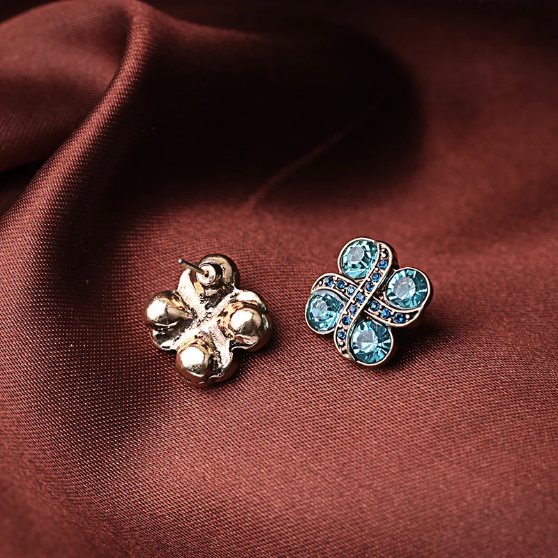 Production name ::Blue Crystal Flowers Stud Earrings