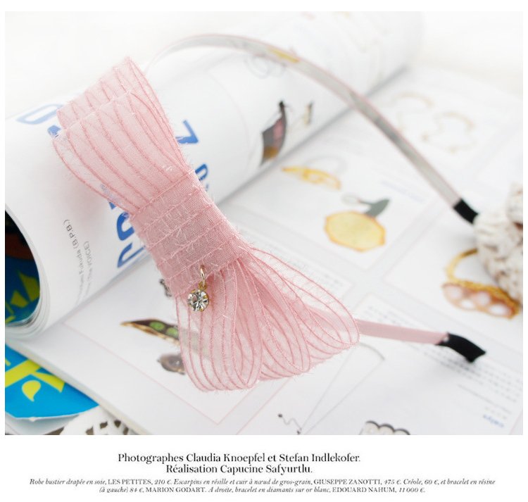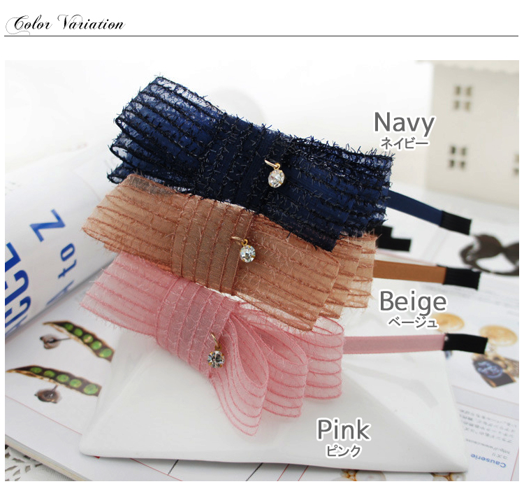 オーガンジーとリボンの組み合わせがかわいいカチューシャ。リボンに付いたチャームがキラリと輝きます。