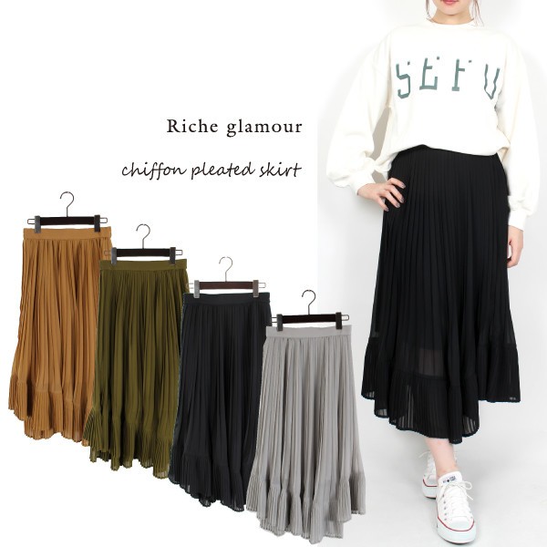 シフォンプリーツ切替スカート